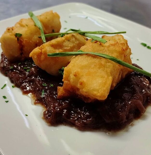 Crostini con mousse di baccalà e peperoncini dolci peruviani 🦆